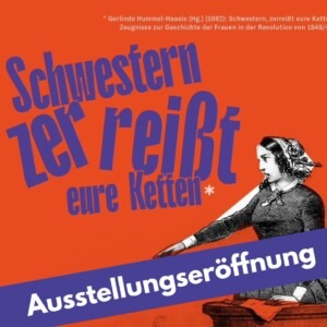 Sonderausstellung: „Schwestern, zerreißt eure Ketten. Frauen und die Revolution 1848/49“ Die Sonderausstellung „Schwestern, zerreißt eure Ketten. Frauen und die Revolution ... 20 März - 17 Mai